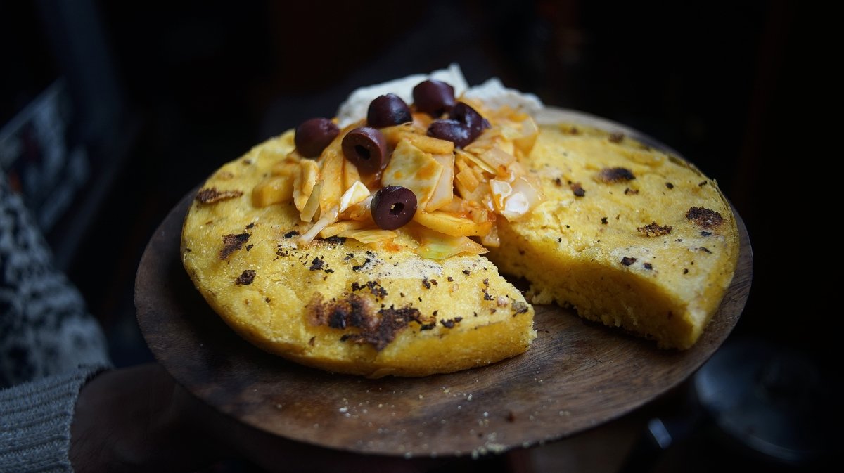 Instead of making one big corn cake, you can divide it into 4, or 8 smaller cakes. It's possible to eat them as is, without a topping, with or without a dollop of vegan butter.