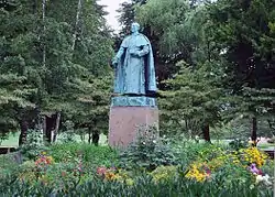 The college built a science building in 1886, lending more legitimacy to science in the curriculum; on June 24, 1891, a copper memorial statue of Bishop Hughes was presented to the university, which still exists today just west of the Cuniffe House.[1] In addition, a three-year Bachelor of Science degree was created. In 1897, academic regalia for students at Commencement was first adopted.[19]