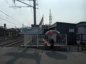 Taman Kota Station (TKO, formerly Kembangan Station) is a class III railway station located in North Kembangan, Kembangan, West Jakarta. The station, which is located at an altitude of +12 meters, is included in the Jakarta Operational Area I and only serves the KRL Commuterline route.